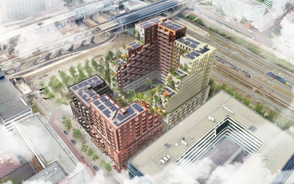 Project Velo, gelegen naast Station Sloterdijk, combineert wonen, mobiliteit en duurzaamheid in een vooruitstrevend wooncomplex. Het project omvat 390 huurwoningen verdeeld over vier gebouwen rond een groene binnentuin. Gemeenschappelijke ruimtes en een gedeelde huiskamer stimuleren sociale verbinding en maken Velo tot een levendige ontmoetingsplek. Een inpandige publieke fietsenstalling met ruimte voor 4.175 fietsen, waaronder 300 huurfietsen, biedt niet alleen bewoners maar ook buurtgenoten toegang tot slimme en duurzame mobiliteit. Deze stalling speelt een belangrijke rol in het laagdrempelig bereikbaar maken van Amsterdam. Met een focus op groen, ontmoeting en innovatieve mobiliteitsoplossingen biedt Velo een toekomstbestendig woonconcept dat bijdraagt aan de stedelijke transitie van Amsterdam Sloterdijk.